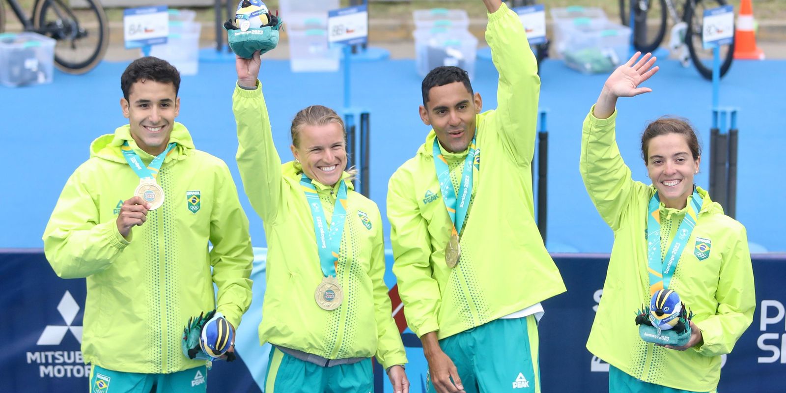 O triatlo brasileiro é bicampeão no revezamento misto nos Jogos Pan-Americanos de Santiago (Chile). Neste sábado (4), na cidade de Vina Del Mar, o quarteto formado por Miguel Hidalgo, Djenyfer Arnold, Manoel Messias e Vittoria Lopes cruzou em primeiro lugar a linha de chegada, com o tempo de 1h15min08, deixando para trás as equipes norte-americana, com a medalha de prata (1h15min26), e a candadense com o bronze (1h15min36).