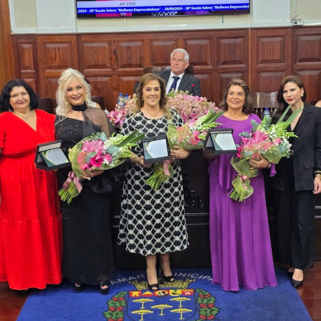 A cerimônia foi presidida pelo vereador Marquinho Amaral, presidente da Câmara Municipal, que destacou as trajetórias das homenageadas, referindo-se a elas como “mulheres de histórias vitoriosas no empreendedorismo e de notável capacidade de atuação no mundo empresarial”.