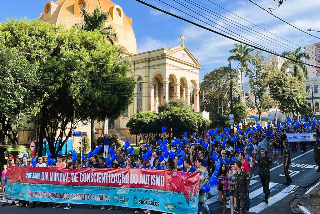 Centenas de pessoas percorreram a Avenida São Carlos na manhã do último sábado, 6 de abril, para celebrar o Dia Mundial de Conscientização do Autismo (comemorado em 2 de abril).