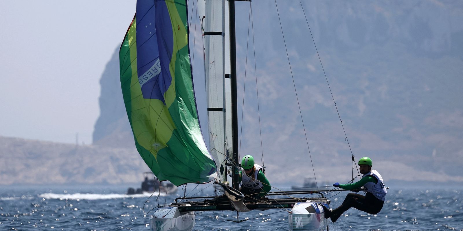 Outras duas regatas inicialmente programadas para esta terça foram canceladas por causa das condições meteorológicas. Assim, o barco do Brasil está na 10ª posição geral e se classificou para a medal race (regata da medalha, que conta com os 10 barcos mais bem colocados ao fim da primeira fase). A prova final da categoria está prevista para a próxima quarta-feira (7), a partir das 10h43 (horário de Brasília). As competições da vela são disputadas na baía de Marselha, no litoral sul francês.
